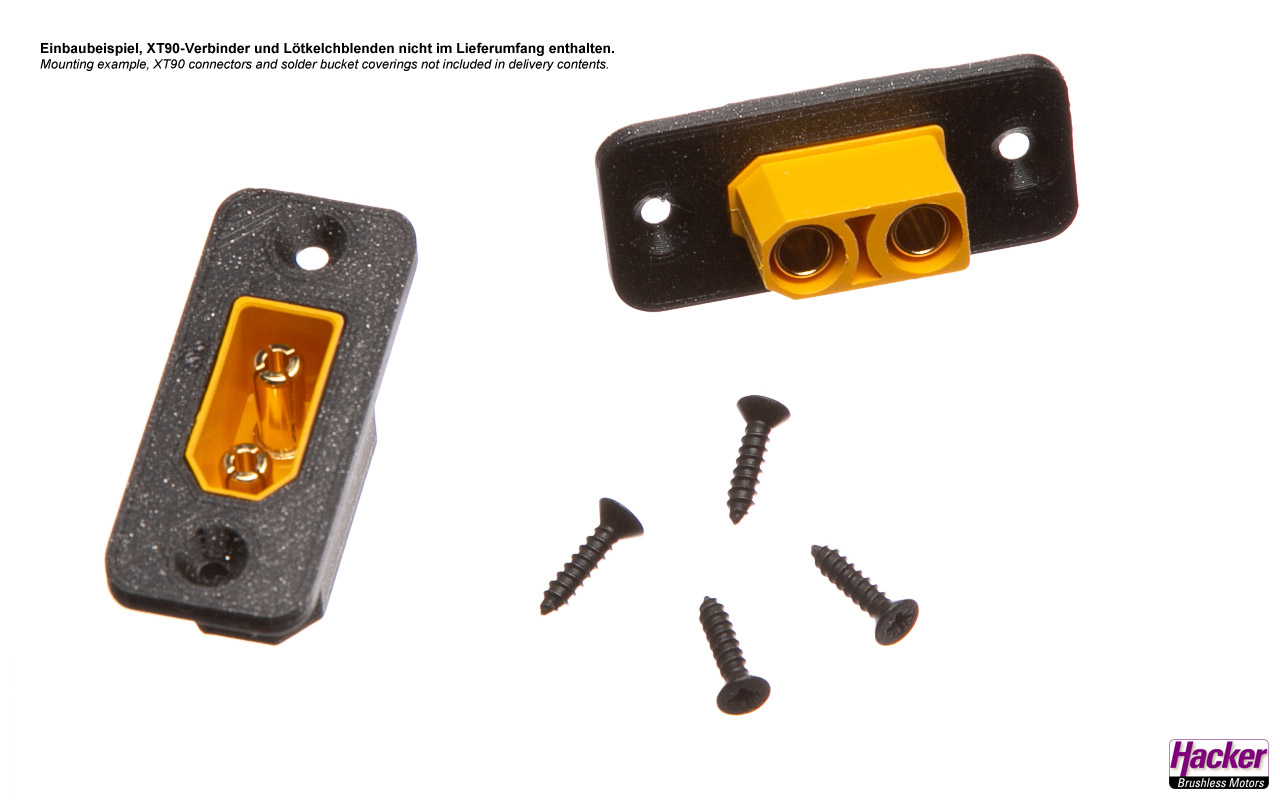 2 montážne rámy pre samičku XT90 a 8 upevňovacích skrutiek.