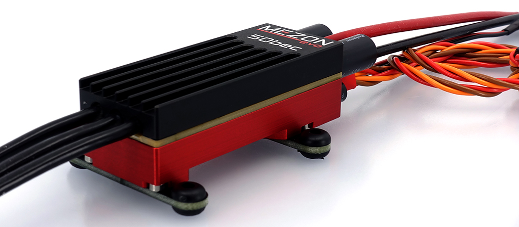 Regulátory MEZON EVO 50 BEC mají hliníkovou krabičku, která pomáhá s efektivním odvodem tepla.